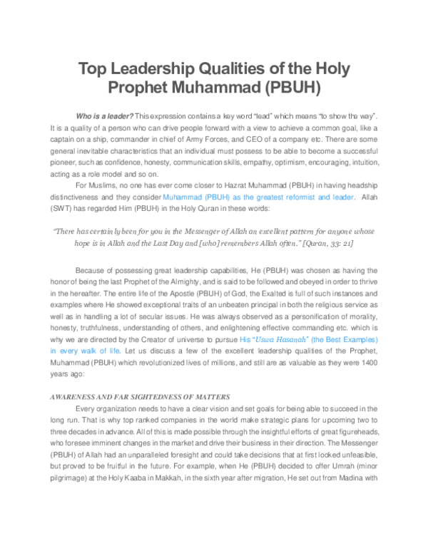Pdf Top Leadership Qualities Of The Holy Prophet Muhammad Pbuh Best Leadership Qualities Pdf