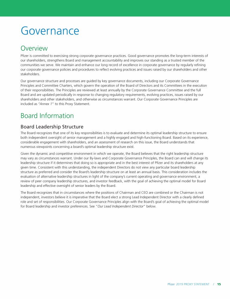 Pfizer Inc 2019 Proxy Statement Board Leadership Positions