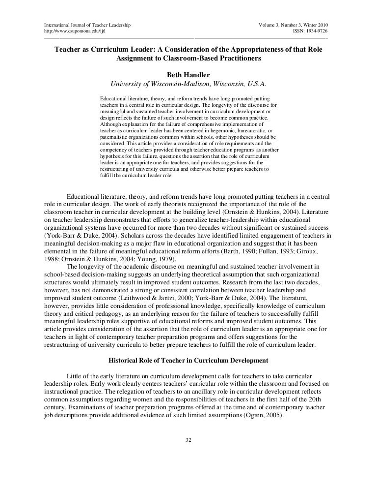 Teacher As Curriculum Leader Curriculum Leadership Strategies For Development And Implementation 4th Edition Pdf