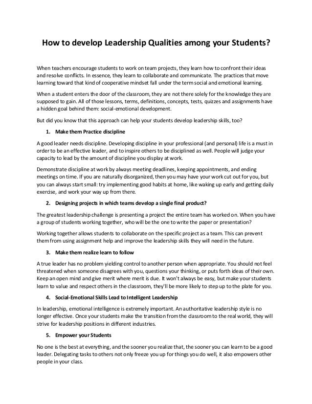 Empowering High School Students To Develop Leadership Skills To Develop Leadership Skills In Students