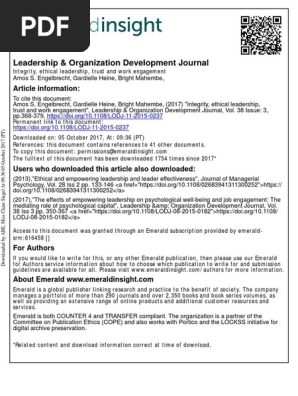 Ethical Leadership A Review And Future Directions Sciencedirect Ethical Leadership Journal Articles Pdf