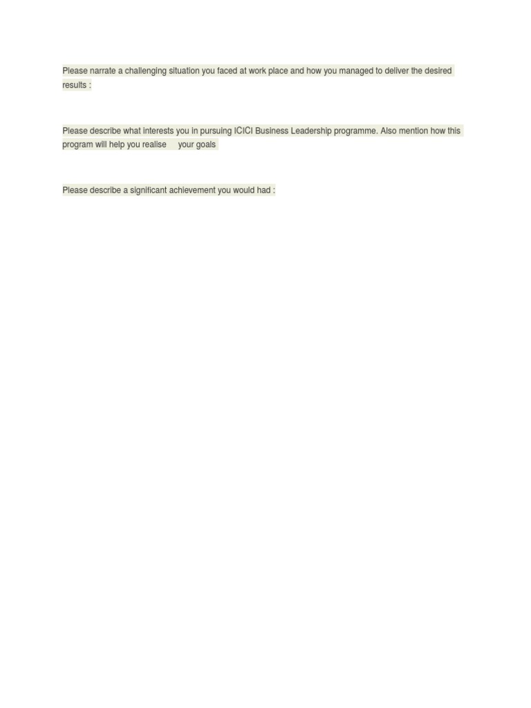 Interview Question Icici Docx Icici Business Leadership Programme 2020