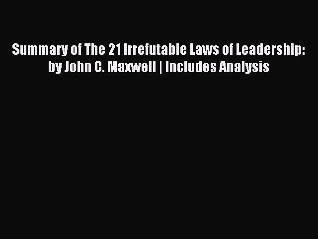 Book Summary The 21 Irrefutable Laws Of Leadership John C John Maxwell 21 Irrefutable Laws Of Leadership Summary