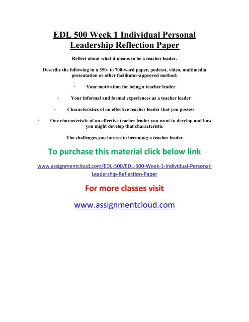 Personal Leadership Reflection Paper Free Essay Example Leadership And Reflection