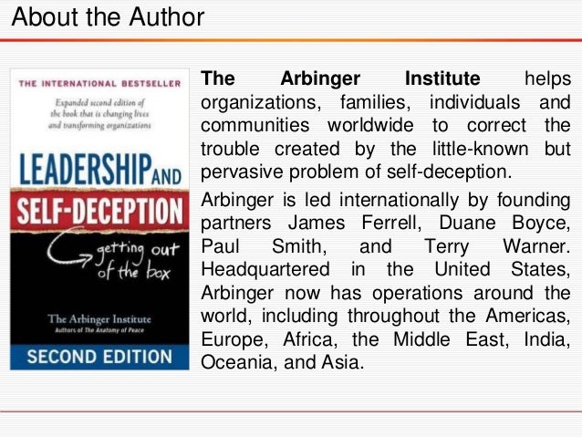 Leadership And Self Deception Getting Out Of The Box The Arbinger Institute 9781576759776 Amazon Com Books Leadership And Self Deception Exercises
