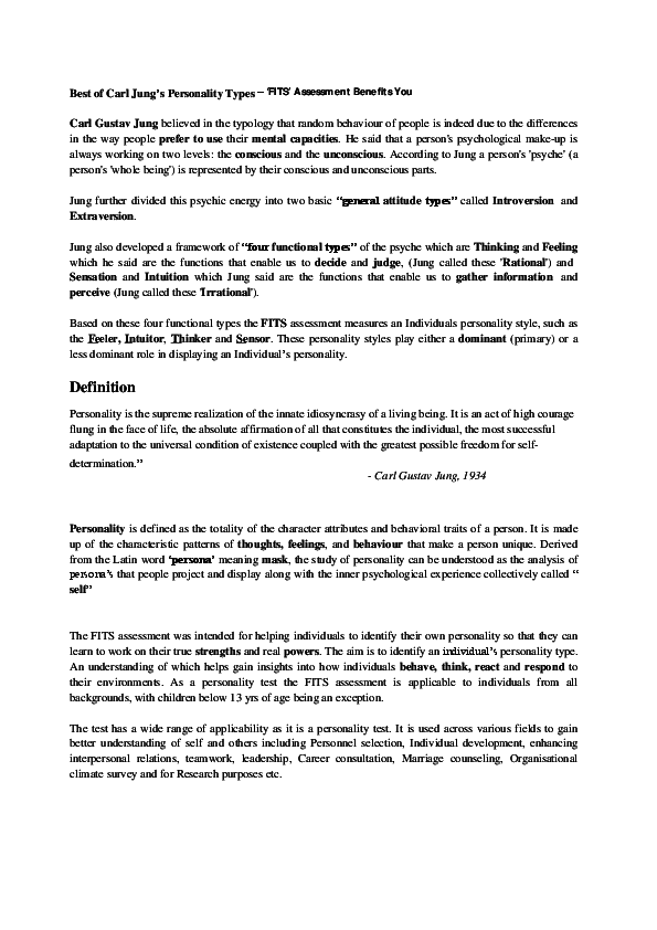Pdf Best Of Carl Jung Personality Types Fits Assessment Leadership Assessment Test Pdf