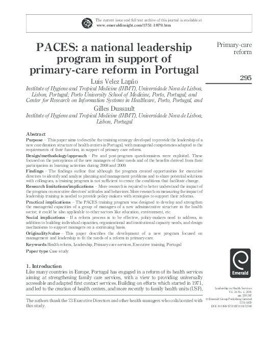 Pdf Paces A National Leadership Program In Support Of Primary Care Reform In Portugal Dussault Gilles And Luis Lapao Academia Edu Leadership Courses Medicine