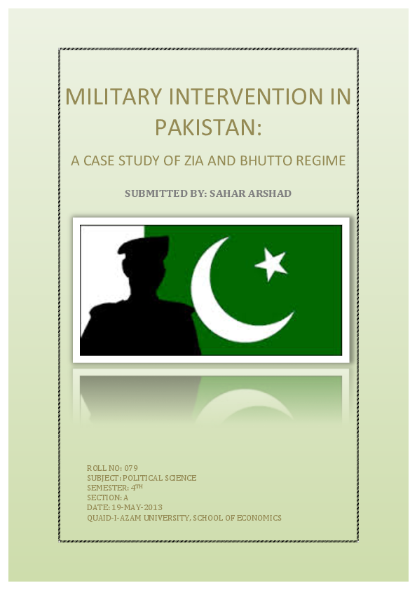 Pdf Military Intervention In Pakistan A Case Study Of Zia And Bhutto Regime Submitted By Sahar Arshad Sahar Arshad Academia Edu Leadership Crisis In Pakistan Css Forum