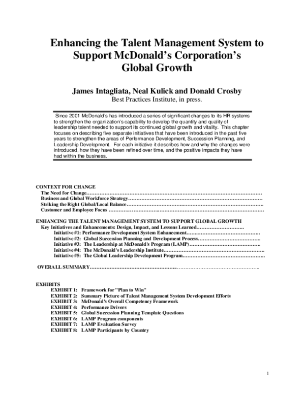 Pdf Enhancing The Talent Management System To Support Mcdonald S Leadership Development Program Questions