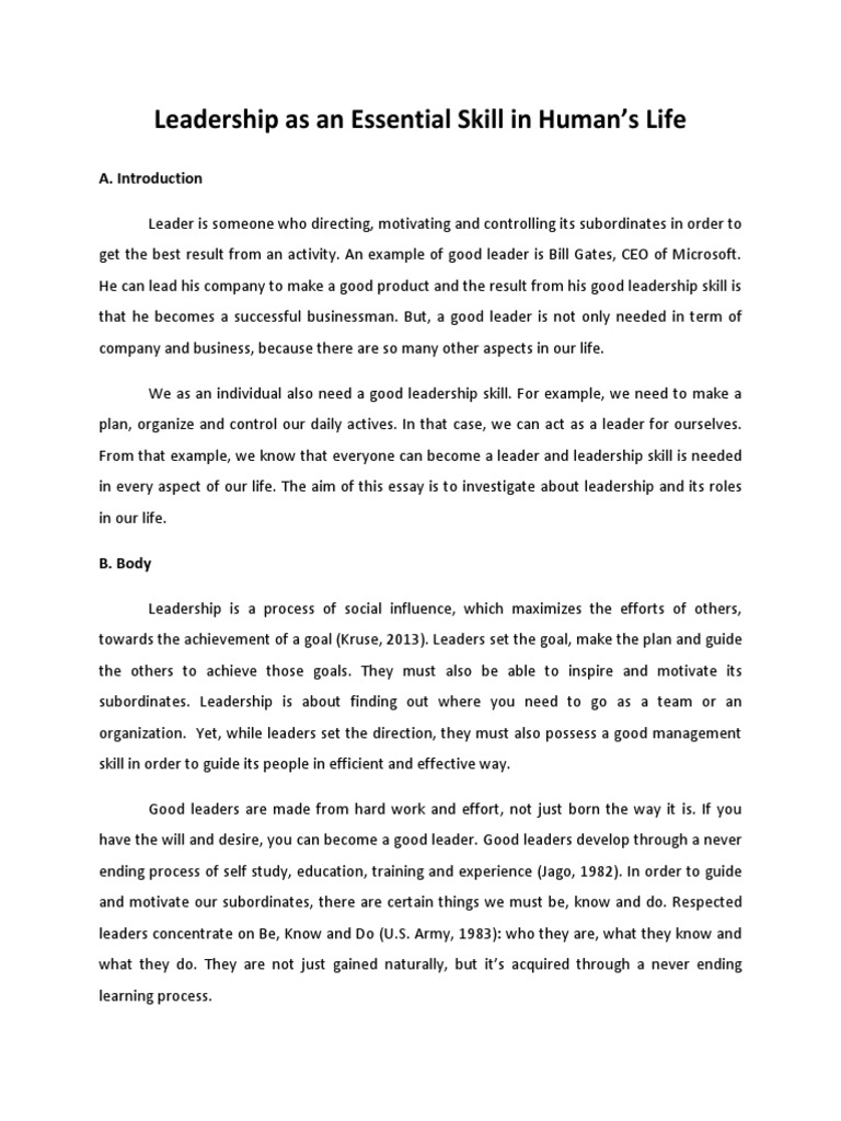 Leadership Essay Characteristics Of A Good Leader Leadership Essay Body