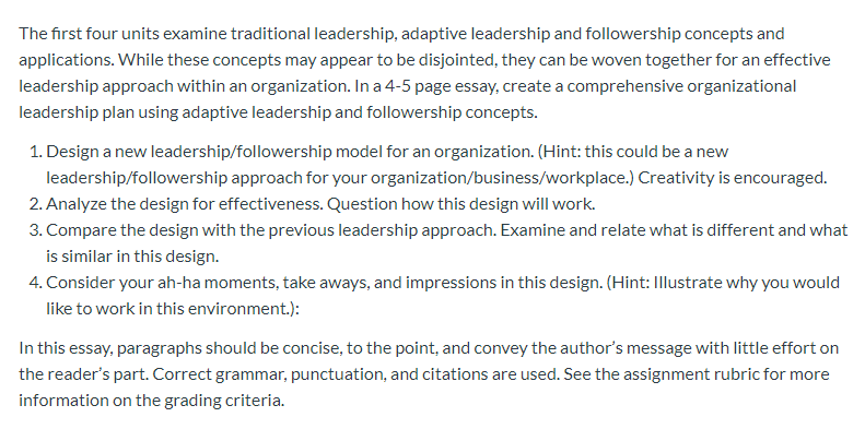 Please Can U Write An Essay Including Introduction Chegg Com Leadership Essay Body