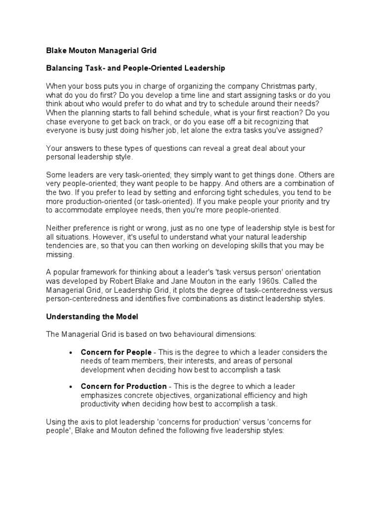 Managerial Grid Model Also Known As Leadership Grid Leadership Grid Are