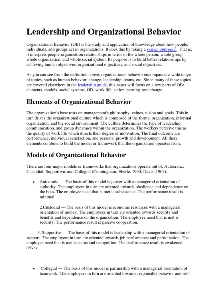 Leadership Organizational Behavior Leadership In Organizational Behaviour