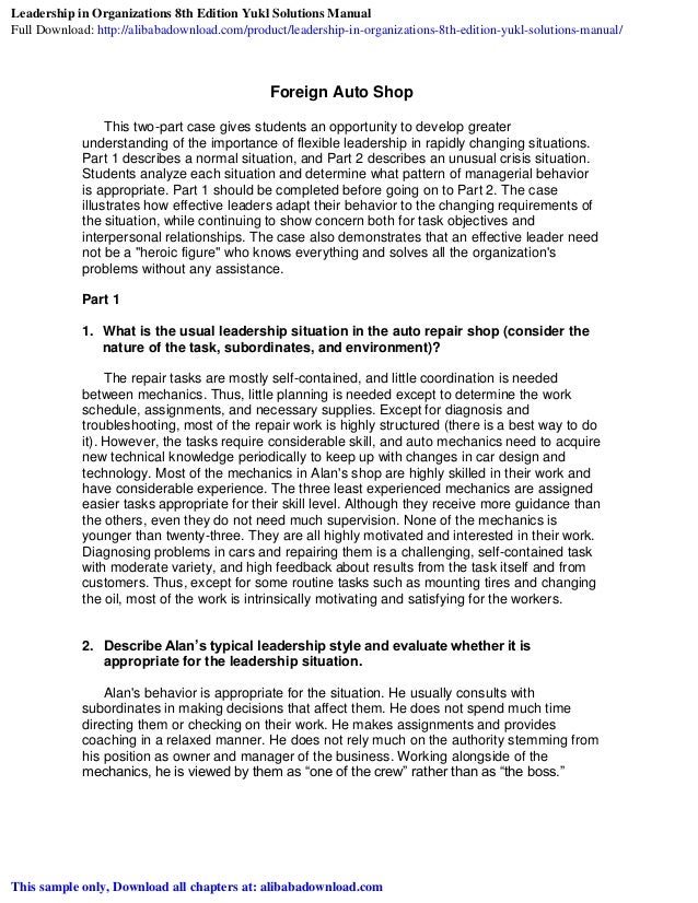 Leadership In Organizations 8th Edition Yukl Solutions Manual Leadership In Organizations Yukl 8th Edition
