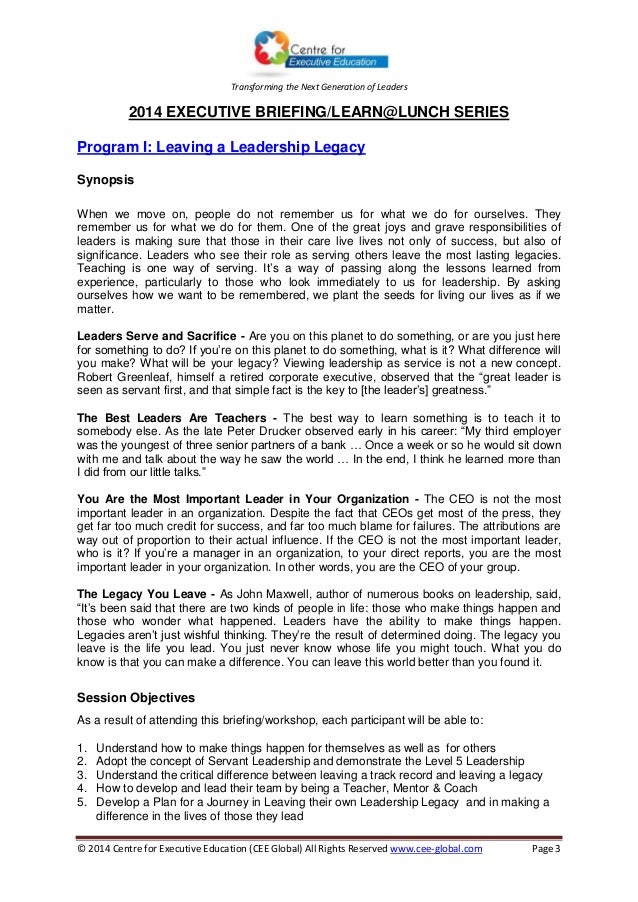Cee 2015 Directory Of Executive Briefing Learn Lunch Series Leadership Legacy Examples