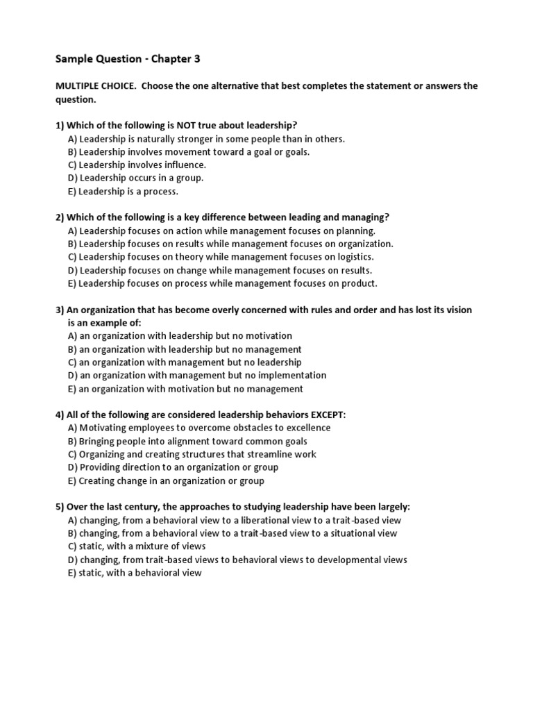 Multiple Choice Questions With Answers Leadership Management Multiple Choice Questions And Answers