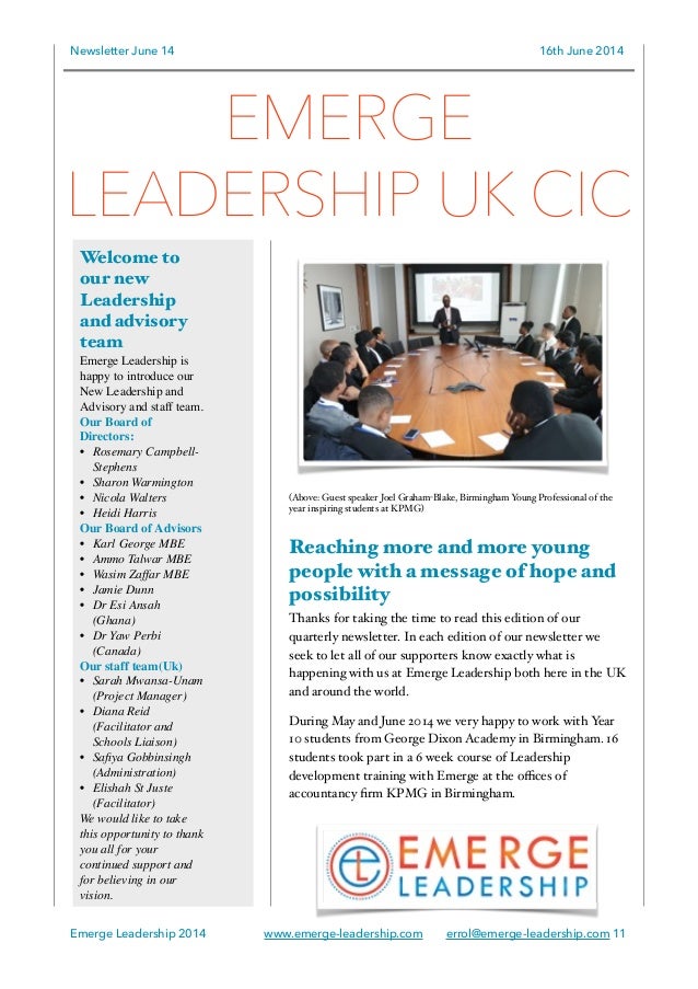 Emerge Leadership Uk And Ghana Newsletter June 2014 Leadership Newsletter www.slideshare.net