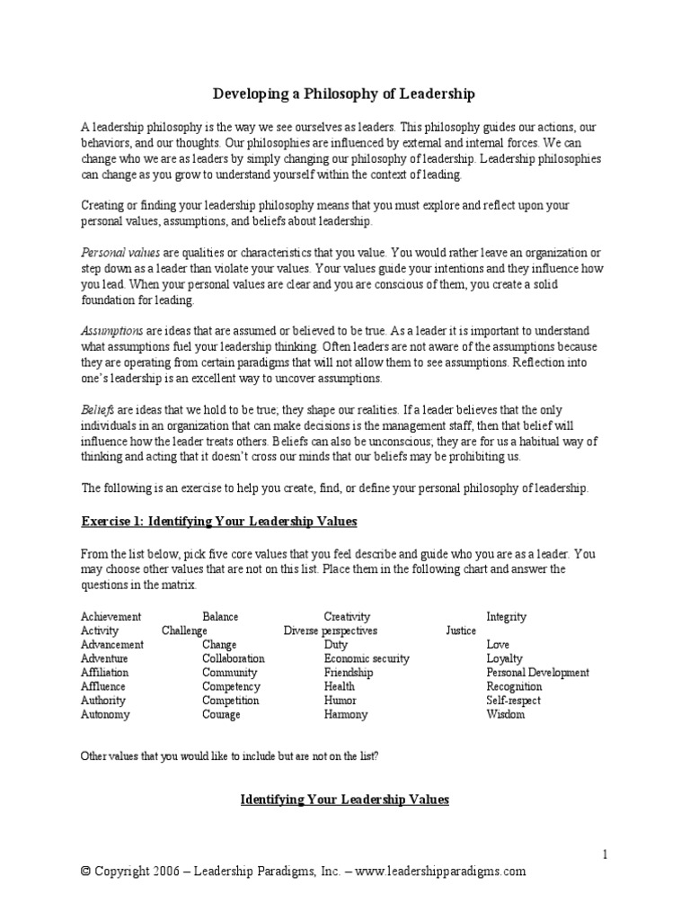 Reid Philosophy Worksheet Leadership Leadership Mentoring Leadership Philosophy Core Values