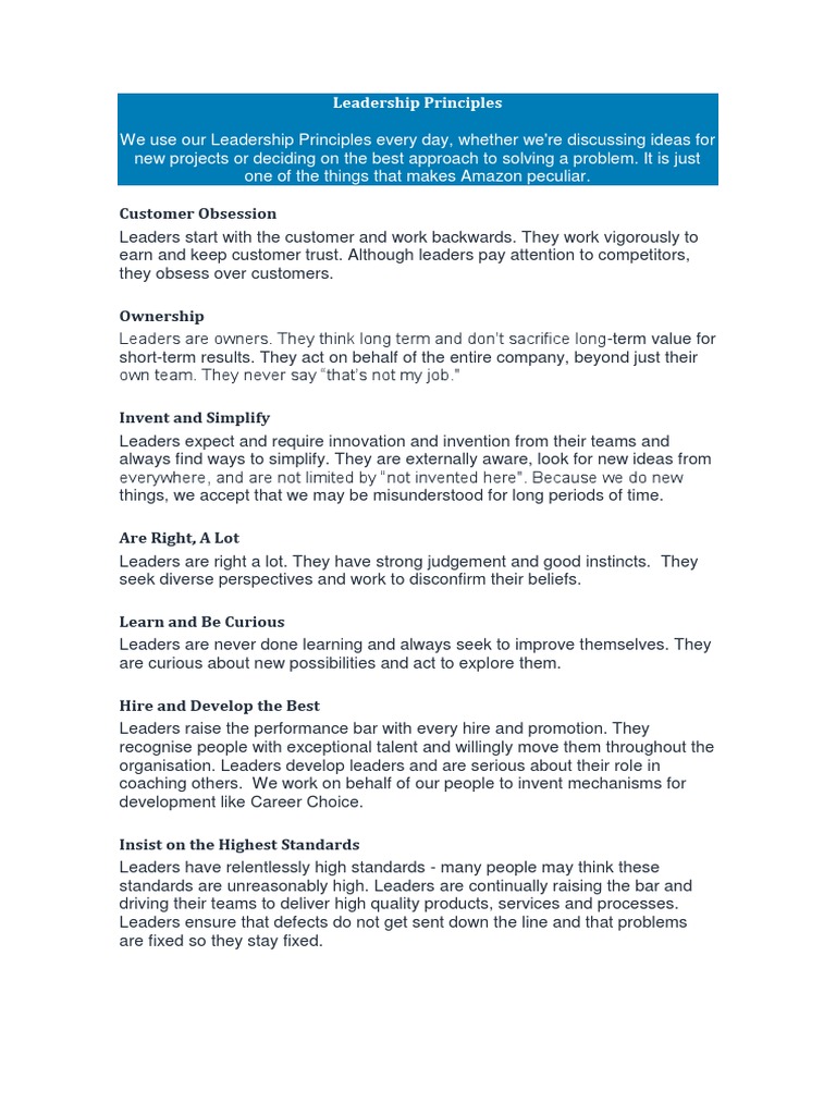 Leadership Principles Leadership Leadership Mentoring Leadership Principles Customer Obsession
