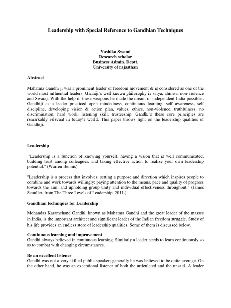 Pdf Mahatma Gandhi An Indian Model Of Servant Leadership Leadership Qualities Gandhi