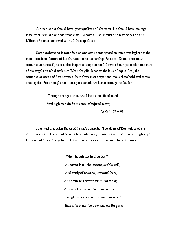Paradise Lost Questions And Answers Enotes Com Leadership Qualities Of Satan In Paradise Lost Book 1