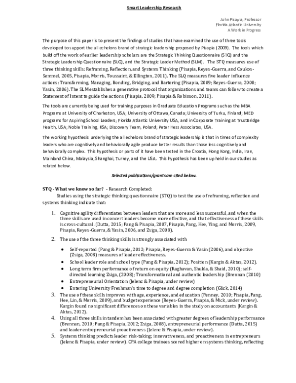 Pdf Smart Leadership Findings And Studies John Pisapia Leadership Questionnaire For Research