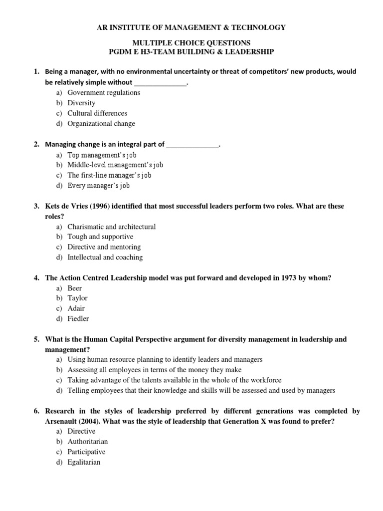Examples Of Multiple Choice Questions On Mk4002 Topics Studocu Leadership Questions Multiple Choice