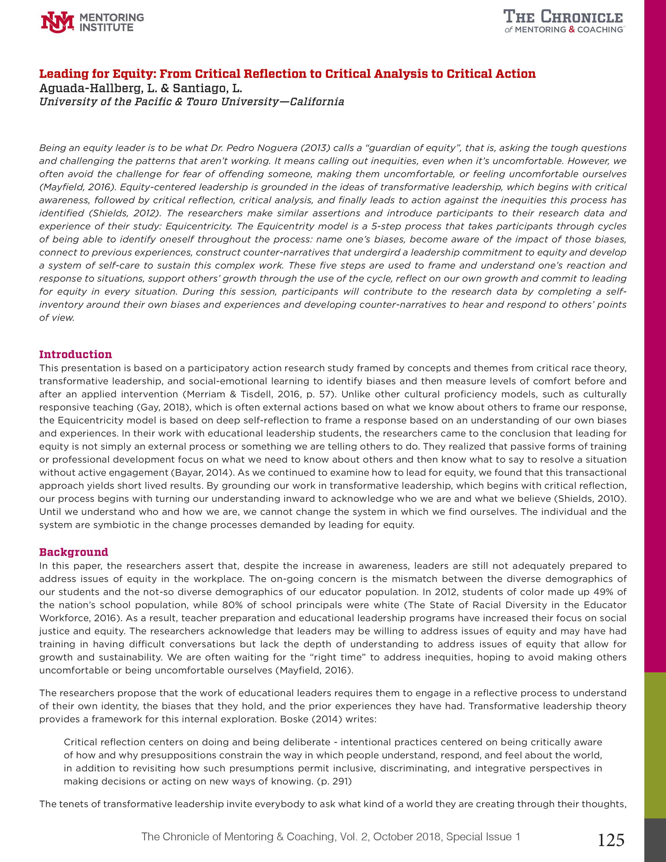 The Chronicle Of Mentoring And Coaching Cmc2018 Page 125 Leadership Requires Reflection