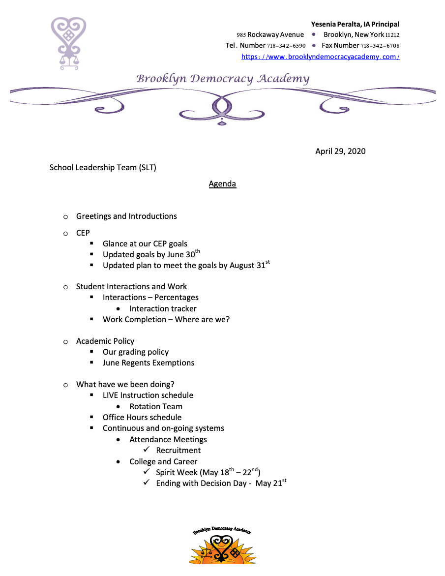 Nola Urban Elementary School Leadership Team Retreat High Level Age Leadership Team Agenda
