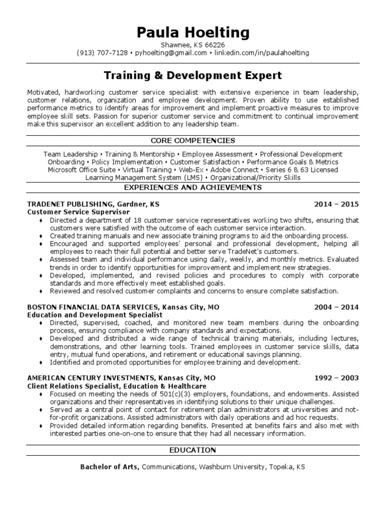 Training Development Specialist In Kansas City Resume Paula Leadership Training Kansas City