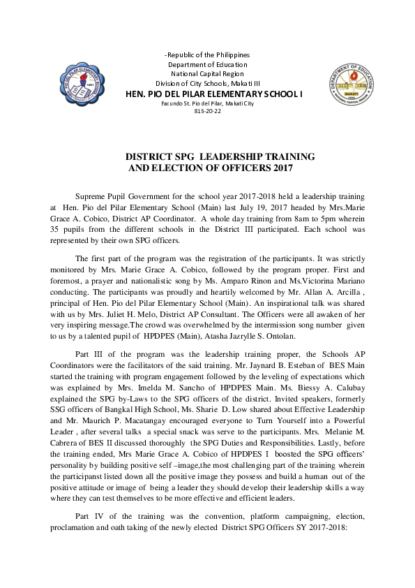 Doc Narrative Report Spg Leadership Training 2012 Marie Grace Leadership Training Report
