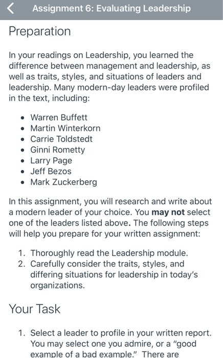 Solved Assignment 6 Evaluating Leadership Preparation In Leadership Traits Of Jeff Bezos