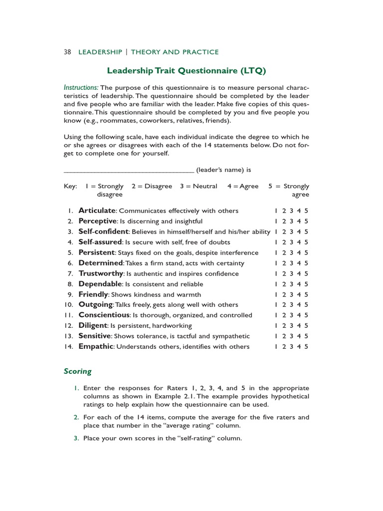 38 Leadershipitheory And Practice Leadership Trait Questionnaire Leadership Traits Questionnaire Ltq