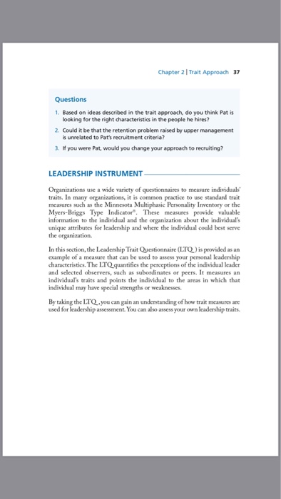 Solved Chapter 21 Trait Approach 37 Questions Based On Id Leadership Traits Questionnaire