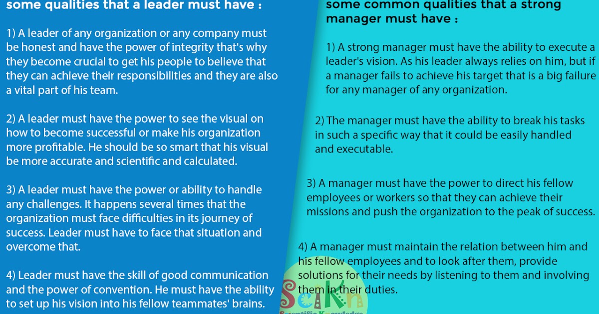Leadership Qualities A Manager Should Have Manager S Leadership Quality Leadership Versus Management How They Are Different And Why