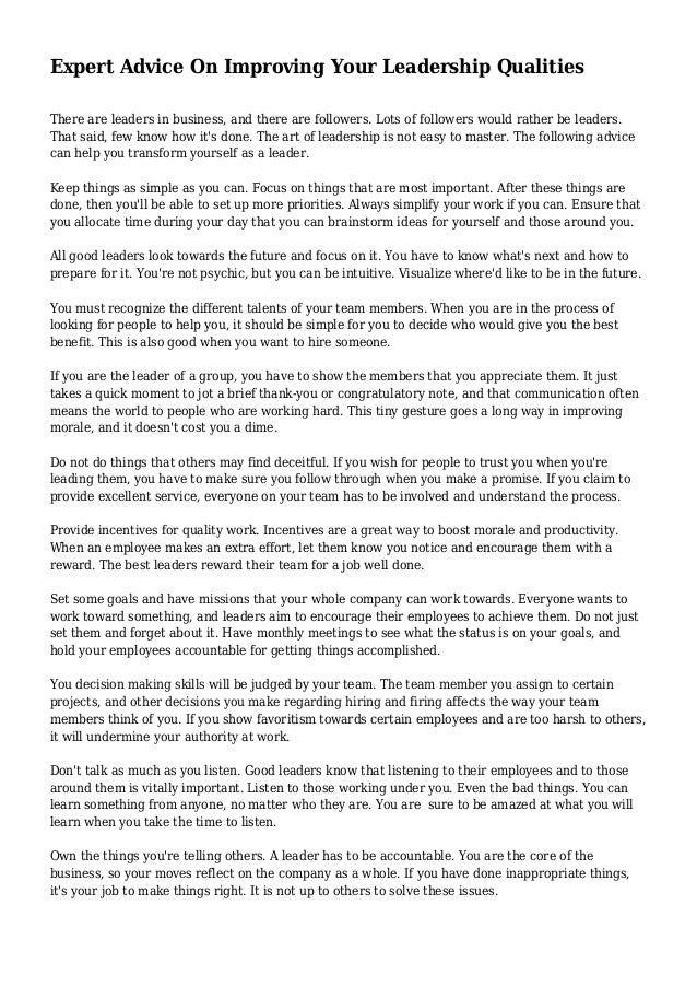 Expert Advice On Improving Your Leadership Qualities Most Important Leadership Qualities Images www.slideshare.net