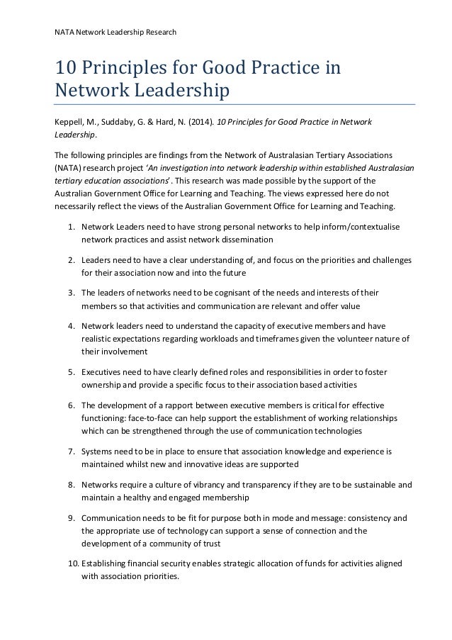 10 Principles For Good Practice In Network Leadership Network Leadership Principles