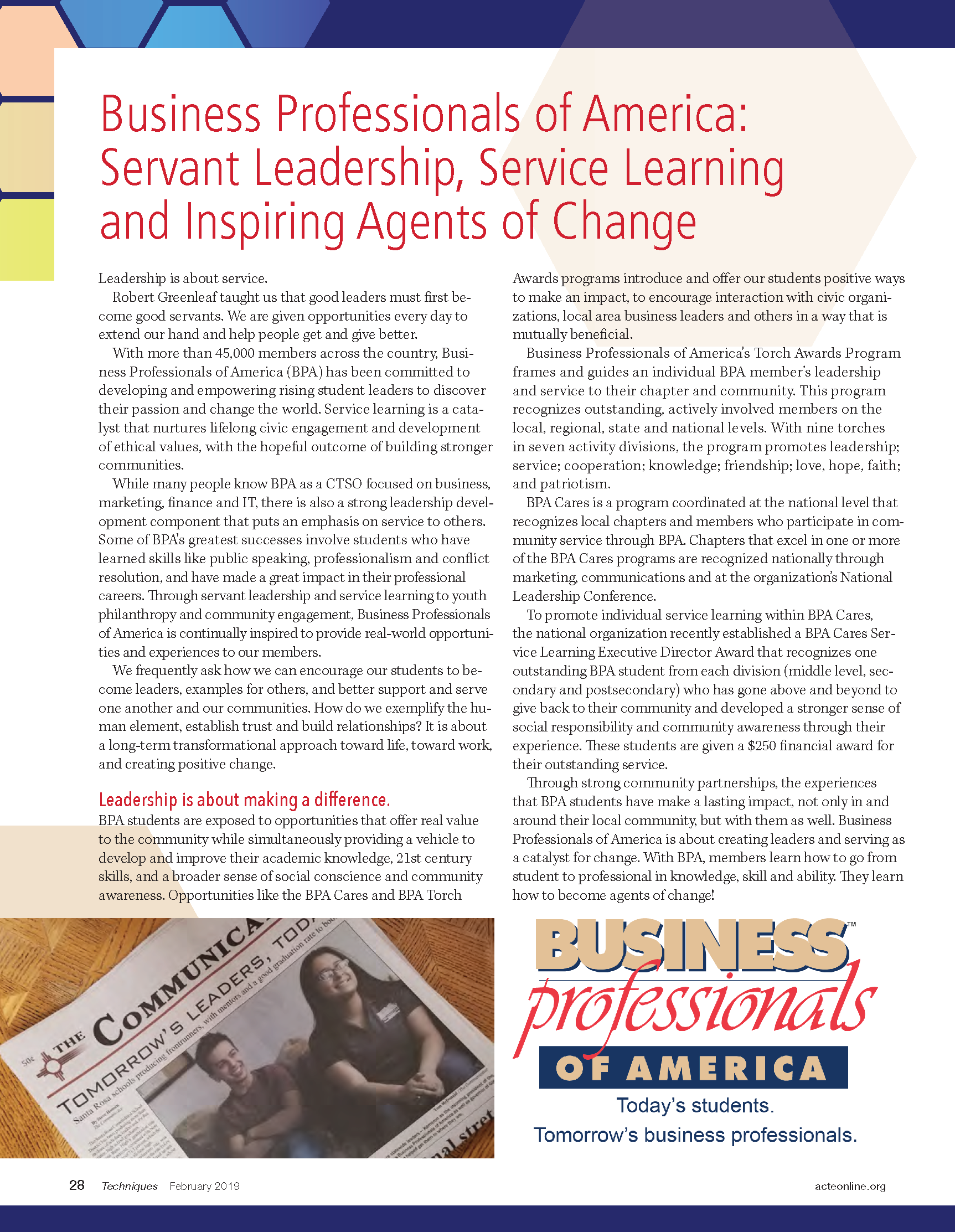 Business Professionals Of America Ctsos Engage Students Acte Servant Leadership Articles 2019