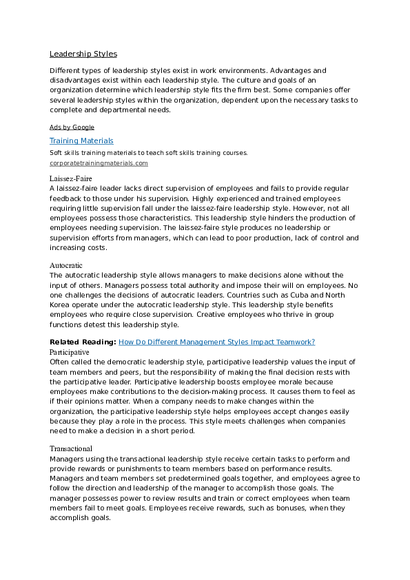 Doc Leadership Styles Aubrey Mncwabe Academia Edu Types Of Leadership Styles With Their Advantages And Disadvantages