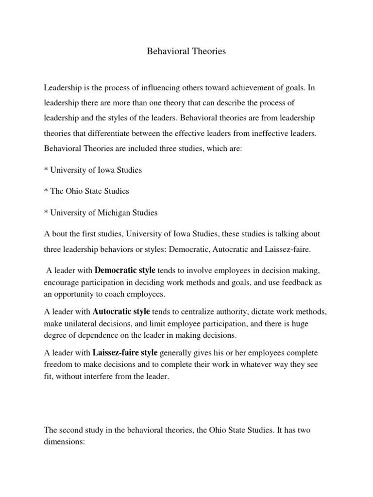 Behavioral Theory Leadership Leadership Mentoring University Of Michigan Leadership Model