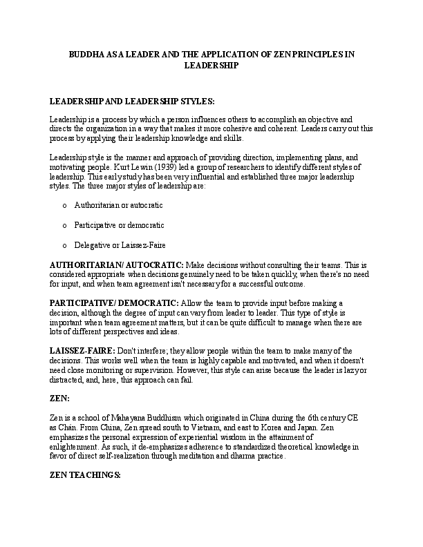 Doc Buddha As A Leader And The Application Of Zen Principles In Zen Leadership Principles